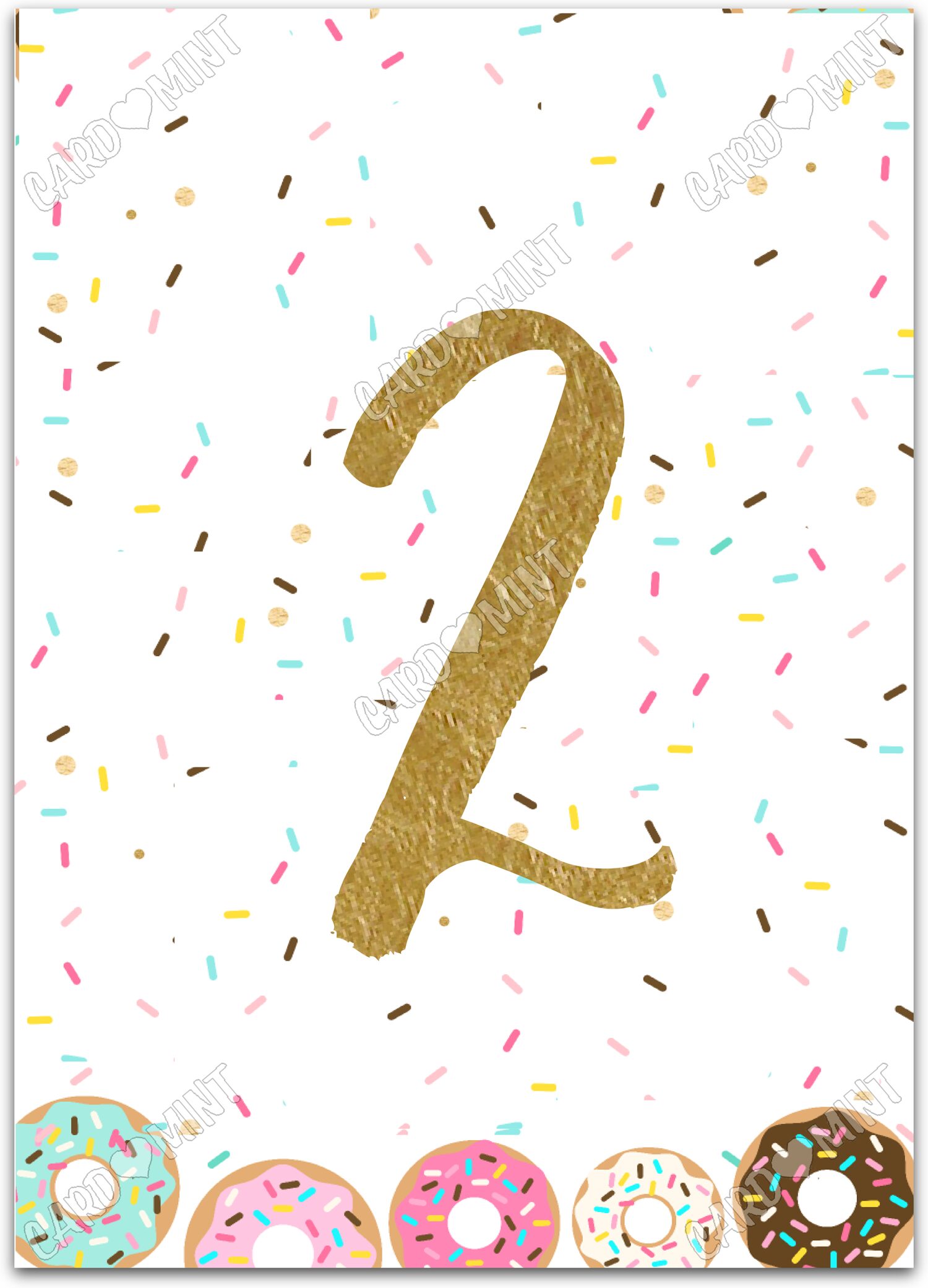 Host a successful 2nd birthday party starting with this donuts & sprinkles white invite! The printed dimensions are 5"x7".